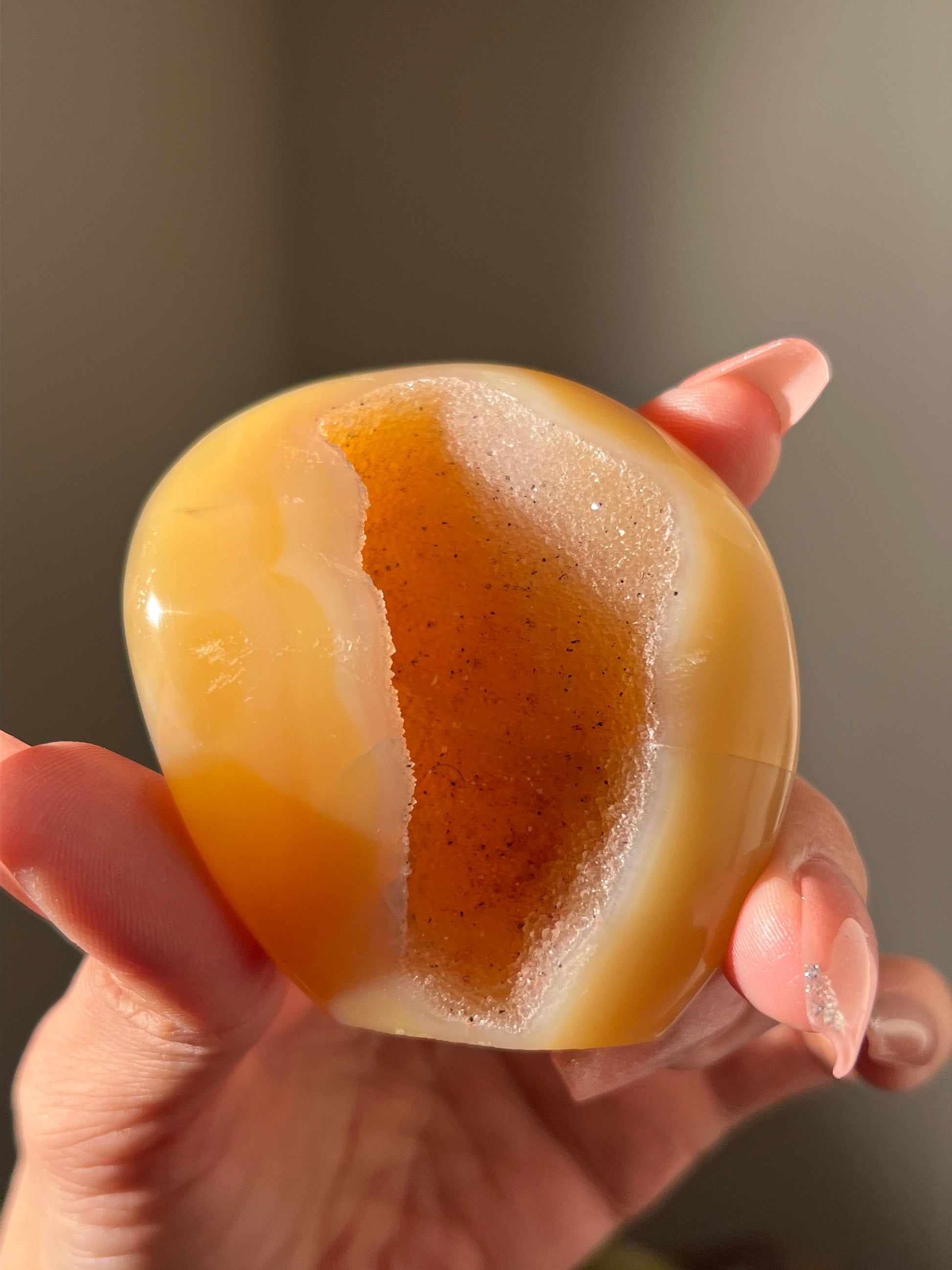 Metaphysical properties: Carnelian is a very high vibrational stone. It works with the root and sacral chakras and aids to stimulate energy to boost confidence and self esteem.