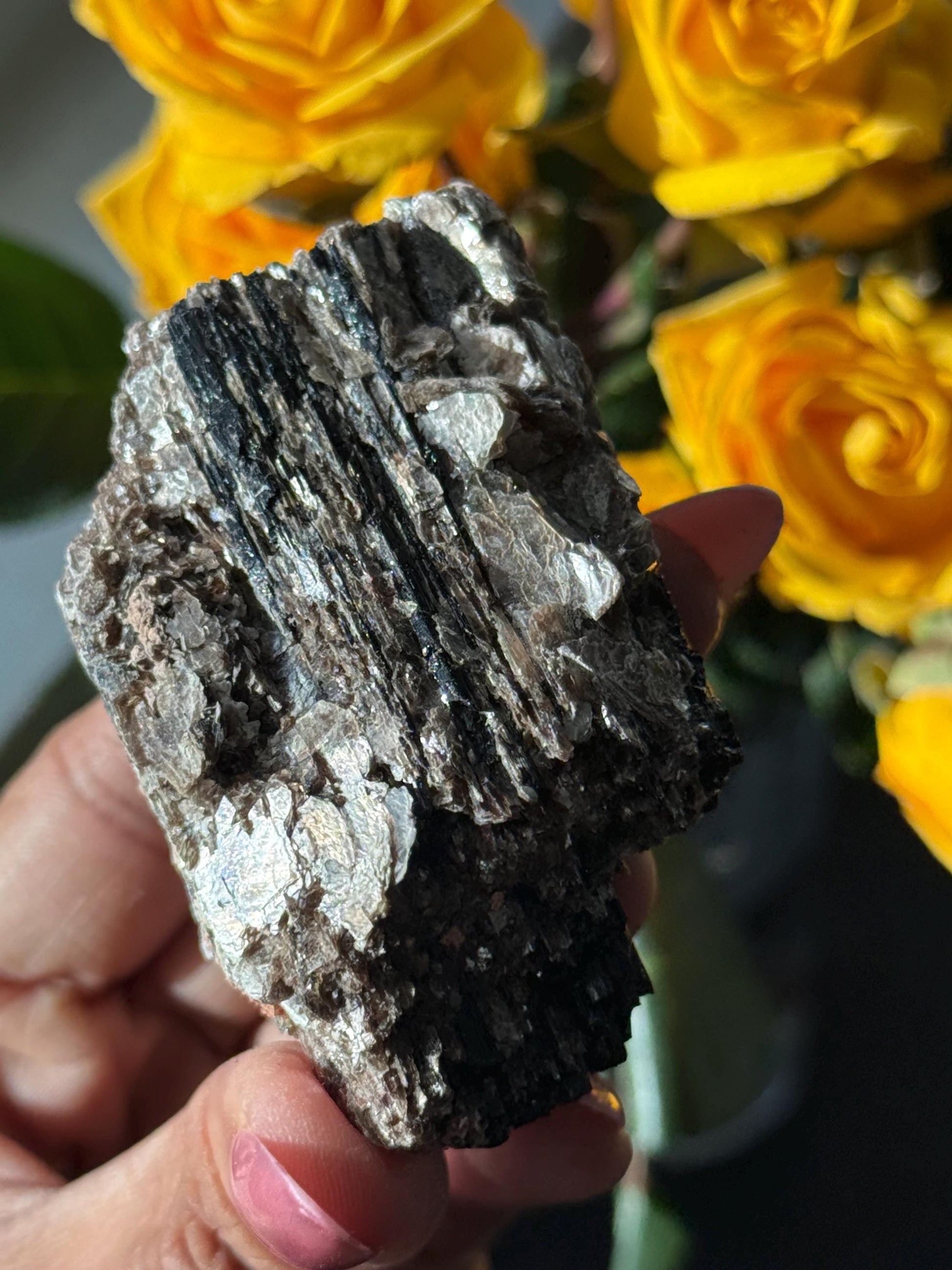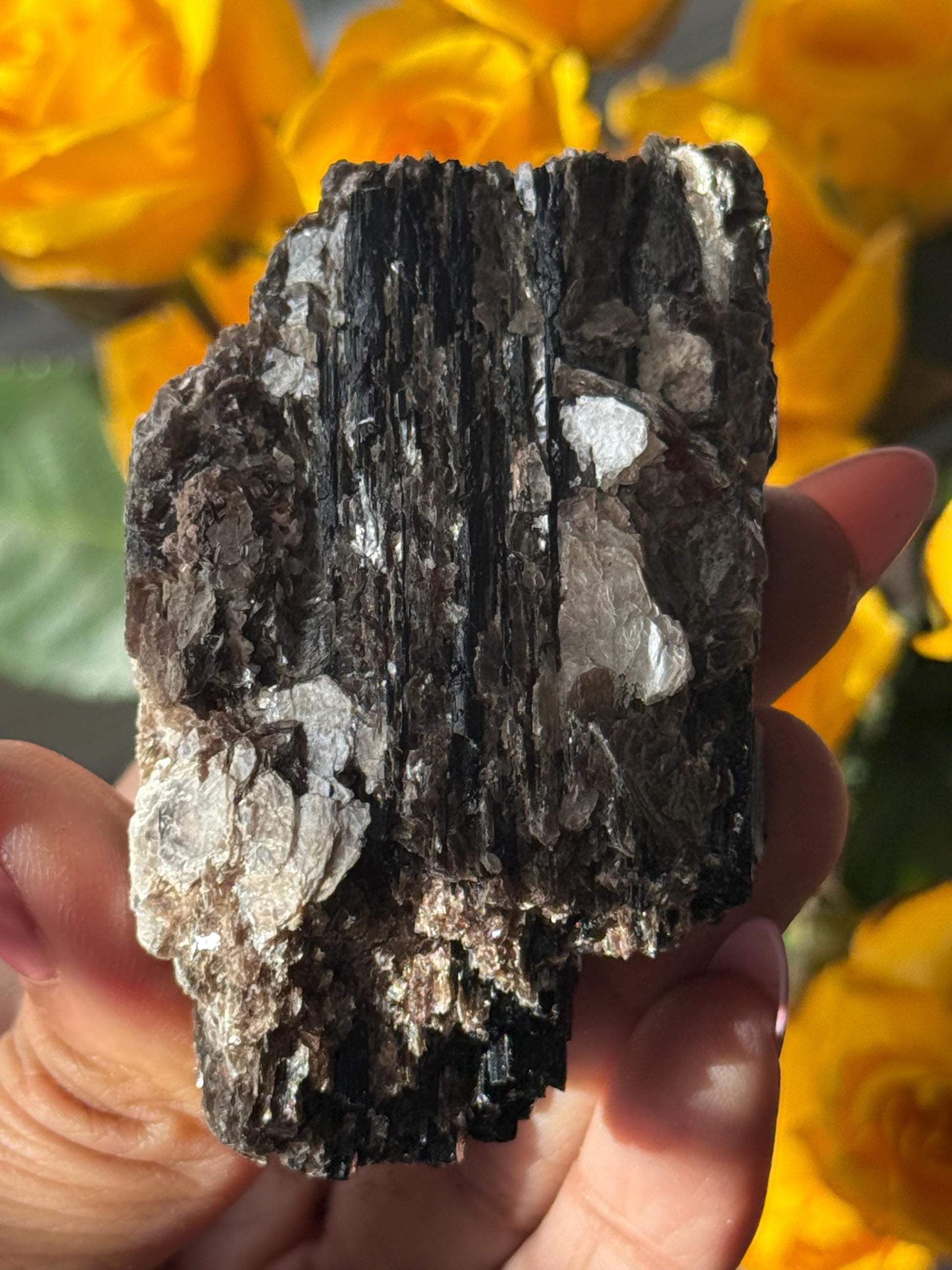 Small Black Tourmaline with Mica, Raw Black Tourmaline, Tourmaline mineral, Raw Crystal Specimen, Crystal Gifts, Home Decor